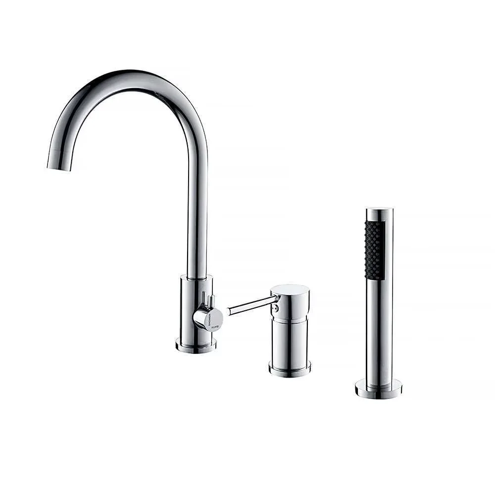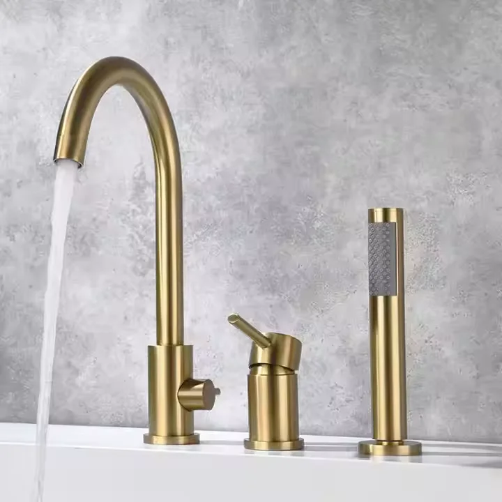 Bath and Shower Faucet 3 Holes Deck Mounted Brass Bathroom Bathtub Faucet Set